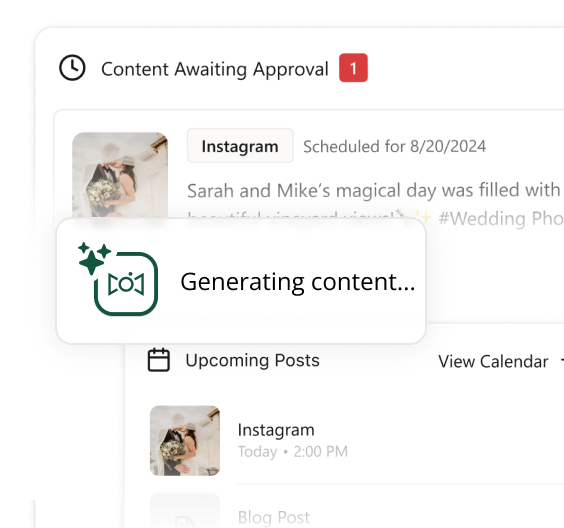 You know you need to post... but then comes the dreaded mental spiral: What should I post? Where are those photos buried on my computer? What do I even say? Who else worked this wedding that I need to tag? By the time you've figured it all out, you're exhausted and three other client emails are waiting.
